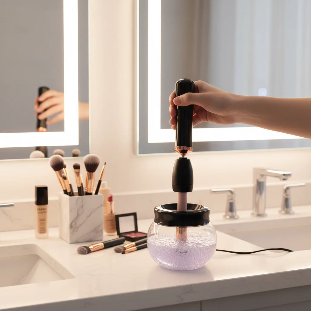 Imaginez un rituel de pureté express. Notre dispositif électrique sublime vos pinceaux en quelques secondes seulement, rendant le nettoyage d'une efficacité redoutable. C'est le geste rapide et élégant pour des outils toujours prêts, sans sacrifier votre temps précieux.